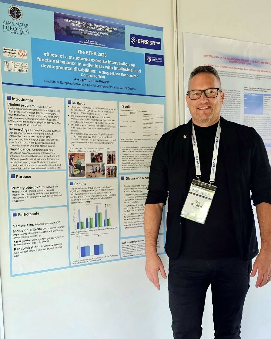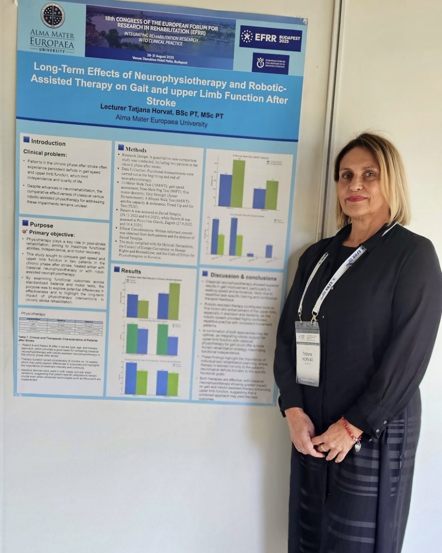Na 18. kongresu European Forum for Research in Rehabilitation (EFRR 2025), ki je med 28. in 31. avgustom potekal v Budimpešti, sta Univezro Alma Mater Europaea zastopala doc. dr. Tine Kovačič, viš. pred. Tatjana Horvat.